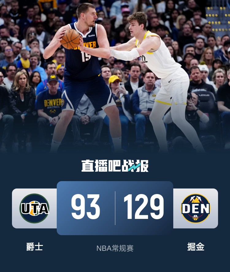 首节之争爵士的表现坐实了副班长的实力单节仅拿到15分,掘金则坐拥主场之利迅速接管比赛送上21-9的攻势早早拉开比分;不过次节爵士状态迅速回暖和掘金打起对攻,他们开局追至2分惊出掘金一身冷汗;不过好在约基奇站出来连续篮下打成迅速稳住局面,他在本节后5分钟里连拿13分,包括最后时刻轰出一记后场超远压哨三分帮助球队重新取得10分领先进入下半场,值得一提,威少这一节助攻超越奥斯卡-罗伯特森登上历史第八。休息归来掘金拉锯半节时候后逐渐接管比赛,他们在第三节后半段至第四节初送出跨节22-5的攻势直接确立起20分以上的领先早早锁定胜局。最终,掘金主场轻取爵士,并送爵士5连败。