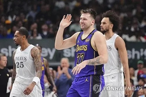 湖人破独行侠。卢卡回老家,开场前被球迷感动到热泪盈眶,然后上半场30分全场45分。