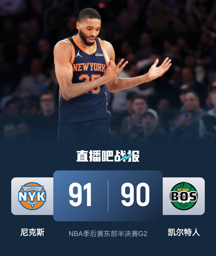 尼克斯(2-0):哈特23分6板3助2帽、唐斯21分17板1助、布伦森17分3板7助、布里奇斯14分7板5助3断、罗宾逊6分8板3断、阿努诺比5分5板1助4断、麦克布莱德5分1助、佩恩1助