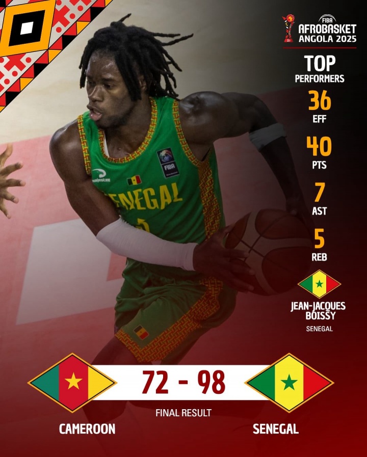 此役,塞内加尔后卫布瓦西大发神威,他登场35分钟27投15中,三分16中8、罚球3中2,狂轰40分5篮板7助攻3抢断,40分创本届非锦赛得分纪录,其正负值是+24,与队友巴吉(12分7板3助1断1帽)并列全场最高!