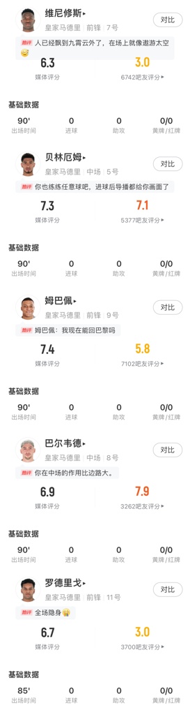 维尼修斯,2亿欧,出场90分钟3次射门0射正,3次尝试过人0成功