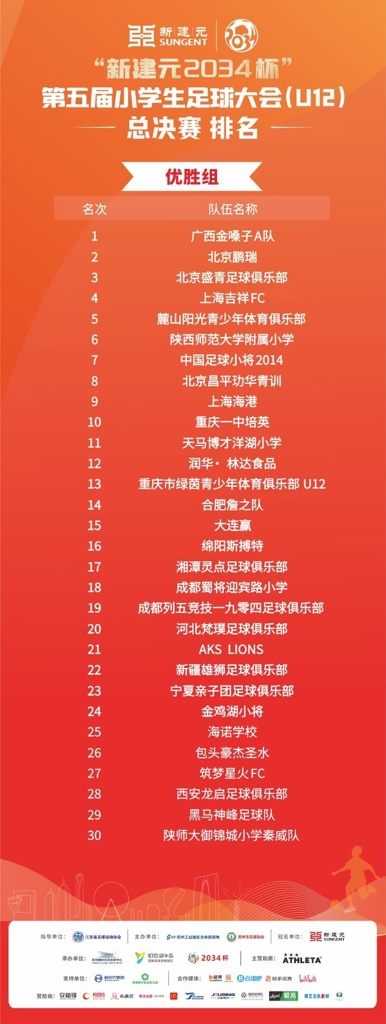 2034杯最终排名:中国足球小将夺得冠军组冠军,北京梦之队第二