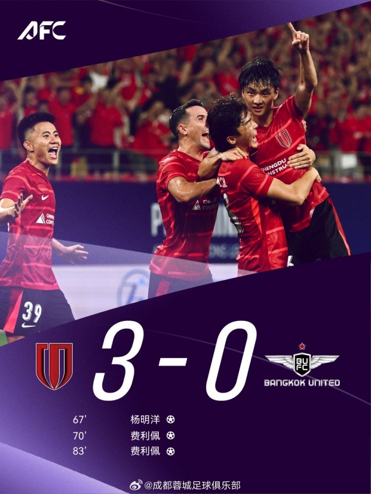 "蓉"耀亚洲,成都雄起!从今天起,亚冠的绿茵场上,成都蓉城的名字将熠熠生辉!让我们继续并肩前行,在新的舞台绽放更耀眼的光芒!