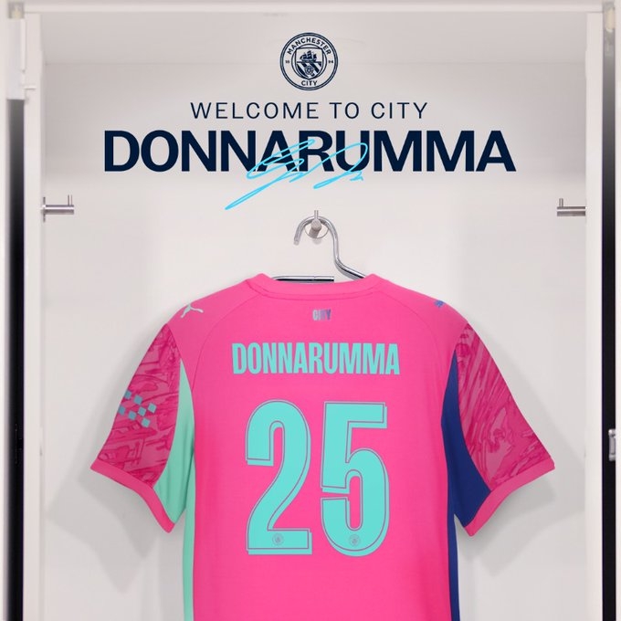 09月03日讯 官方消息,曼城新门多纳鲁马将身披25号球衣!