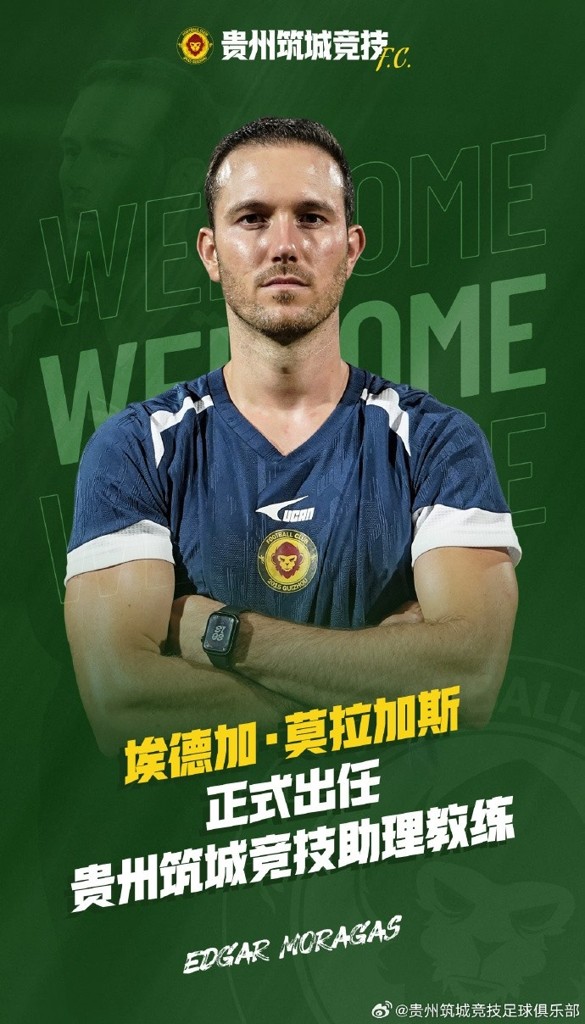 官方:西班牙籍教练埃德加-莫拉加斯出任贵州筑城竞技助理教练